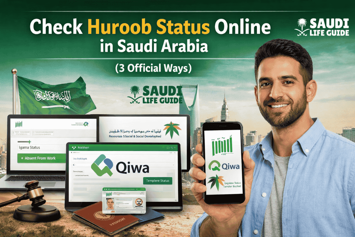 Based on real expat experience in KSA, huroob status can quietly block job changes, salary transfers, exit visas, and even daily services. The good news is that the Saudi government now allows you to check huroob status online through multiple official platforms—without visiting Jawazat.