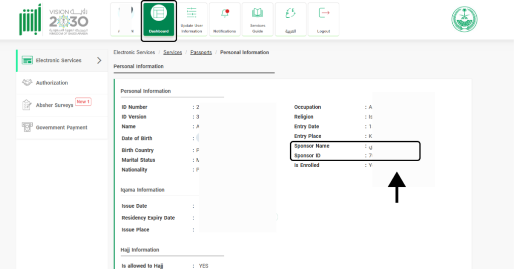 The General Organization for Social Insurance (GOSI) website can also reveal sponsor information for insured workers.