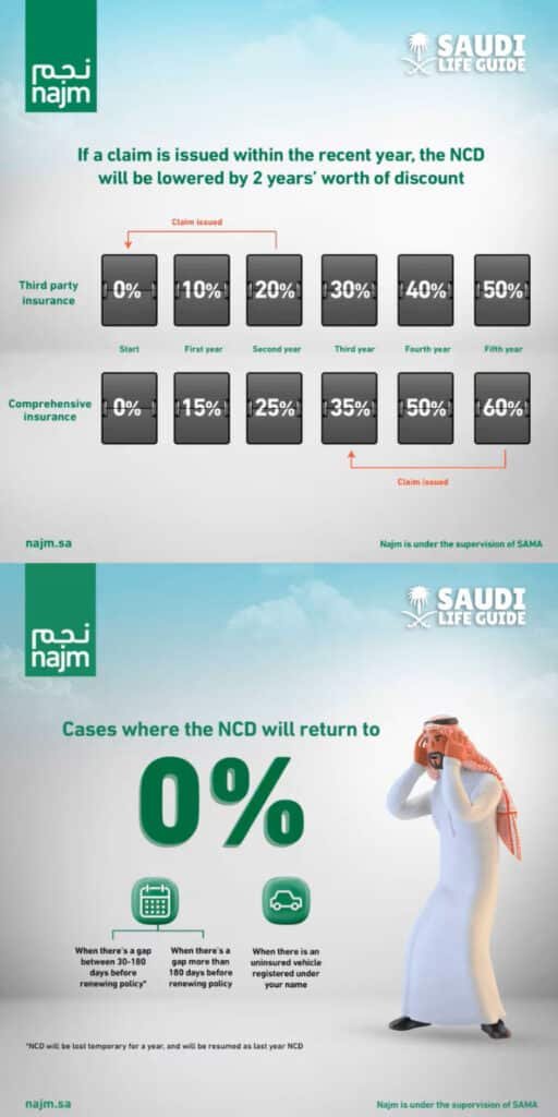 | Claim-Free Years | NCD Percentage | Potential Savings (on SAR 2,500 premium) |